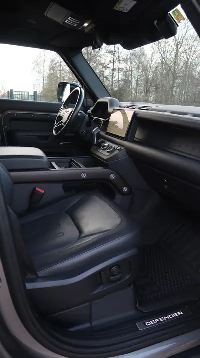 This Land Rover Defender P400e 110 X-Dynamic HSE combines legendary off-road capability with modern hybrid technology. The plug-in hybrid powertrain delivers 640 Nm of torque and offers electric driving for daily use. Fully equipped with air suspension, panoramic roof, head-up display and Meridian premium audio. In the distinctive Gondwana Stone colour with 22-inch wheels and electrically deployable tow bar.